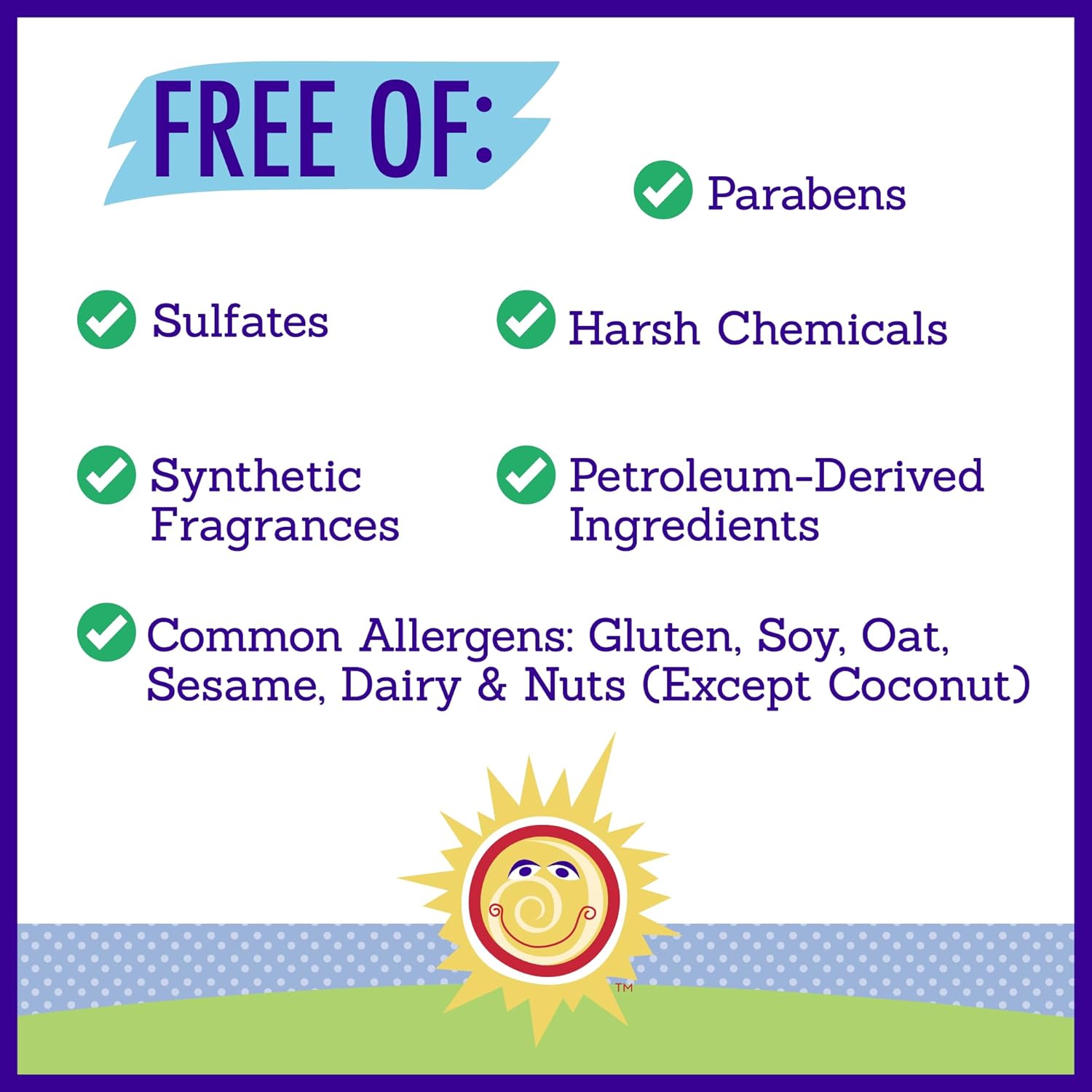 • STRICTLY ALLERGY TESTED: Our toddler shampoo and body wash is free of common allergens like gluten, soy, sesame, oat, dairy, peanuts, and tree nuts (except coconut). No risk of cross contamination with those allergens.