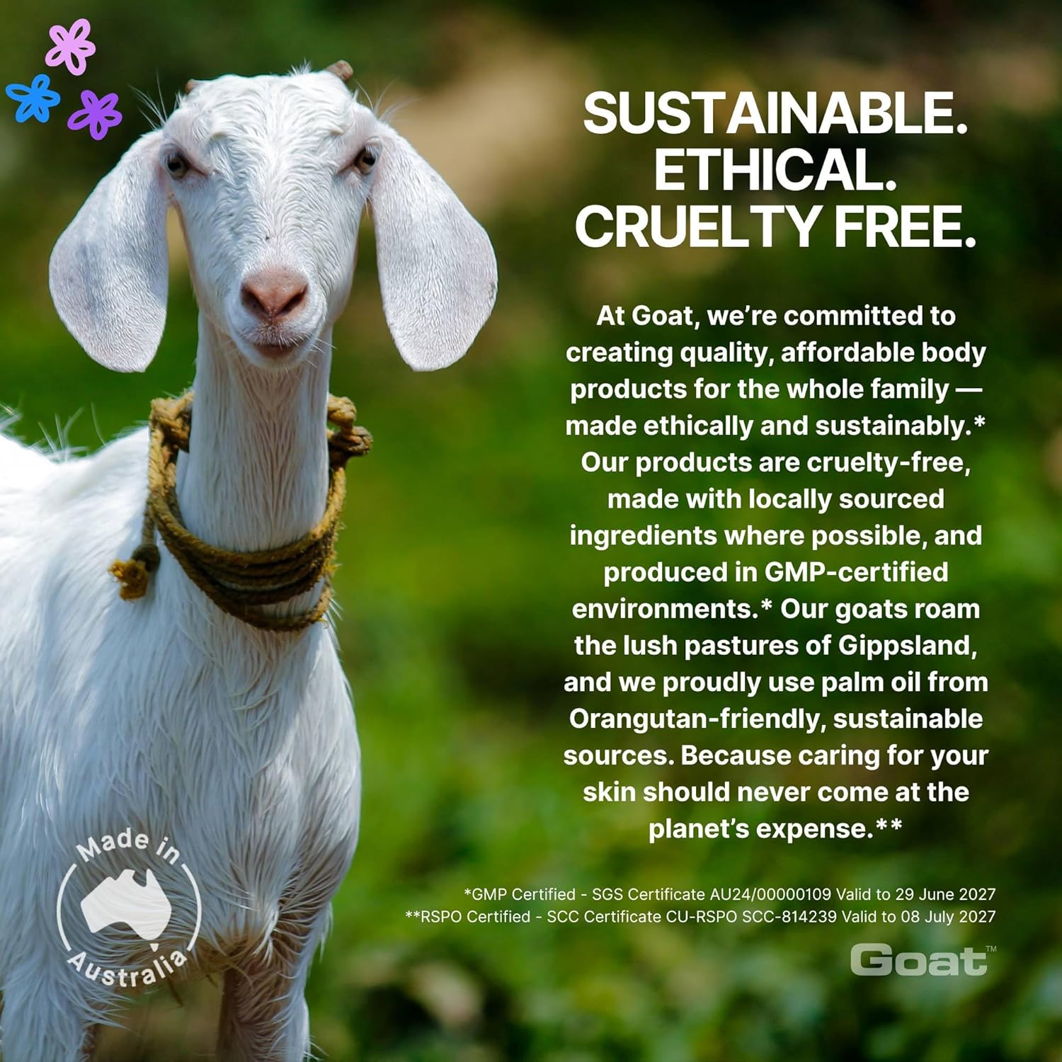 - Soothes and moisturizes dry and irritated skin. Goat milk with the pH closest to our skin and naturally hydrating fatty acids, goat milk restores and maintains our skin's natural balance and moisture