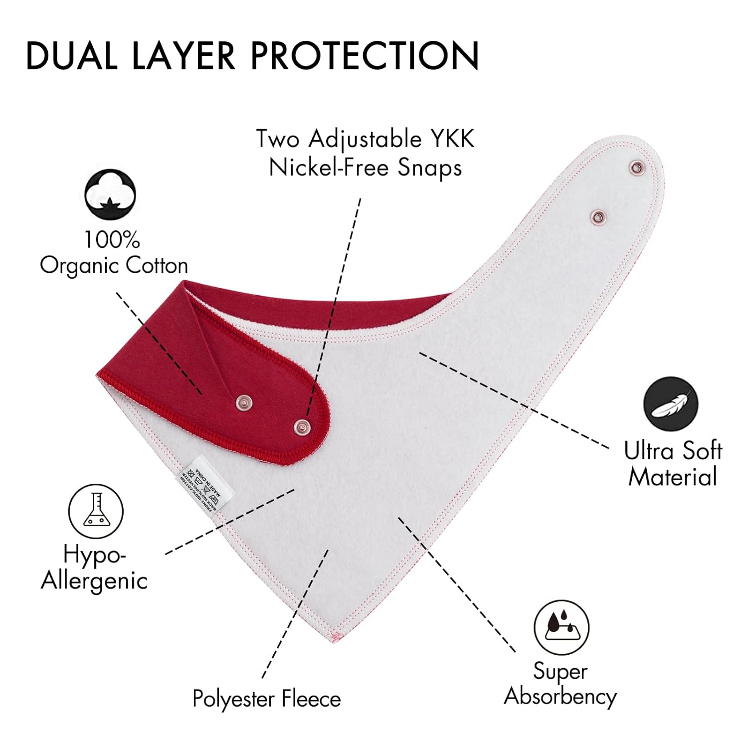 • Multi Functional Use - Our baby bibs for drooling and teething,provide full coverage for baby’s torso and stays flat on your baby’s chest at all times. They are lightweight, plushy, ultra soft and suitable for all skin types including sensitive skin. You can use them as drool bibs, feeding bibs, for burping, spills and mess, or as a handkerchief while on the go.