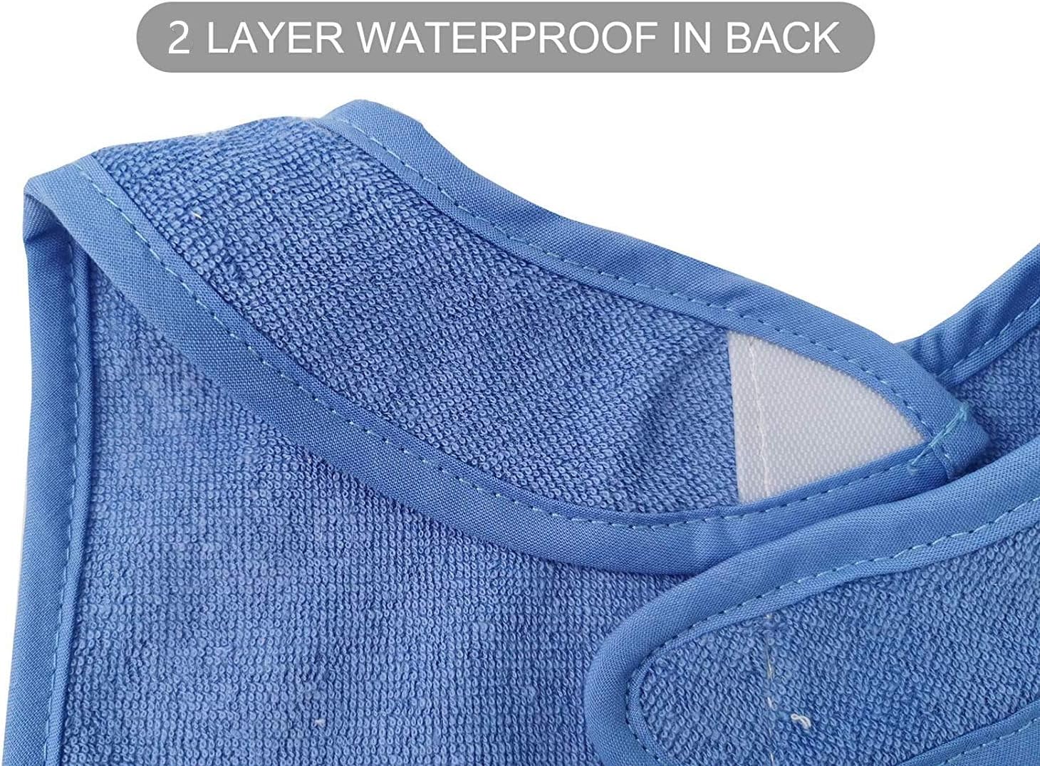 • 2 Layer Waterproof Newborn Bib:Our bibs are made of waterproof layer between 2 Waterproof Layer Drool, absorbent layers. Milk, juices, water, solids are easily absorbed on baby's keeping clothing clean. Catching feeding drops, drool or saliva.