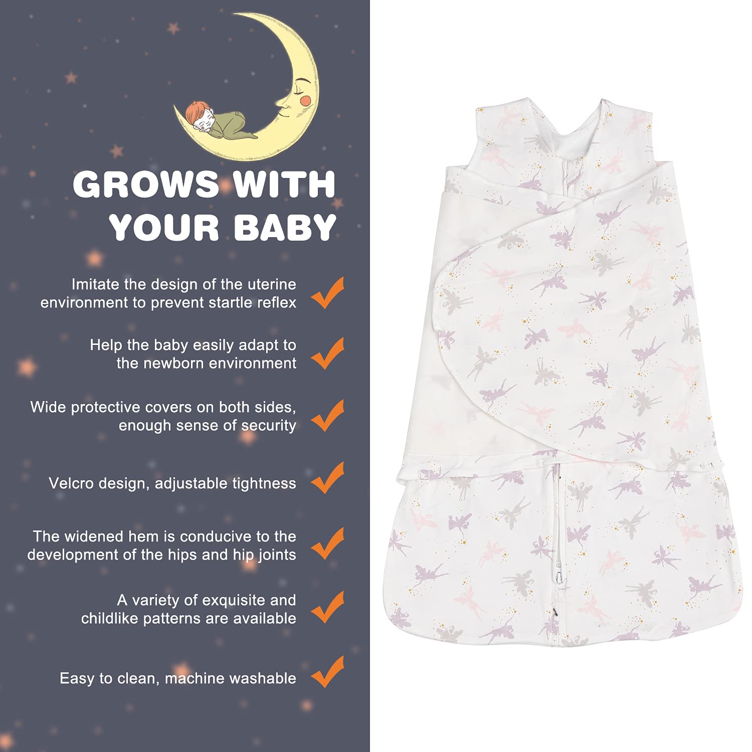 Swaddle-Blanket Baby Girl & Boy Swaddles Newborn Infant Transition 100% Cotton Wrap Blankets, 3-Way Adjustable Wearable Blanket, TOG 1.0 (Little Fairy, 3-6 Month)