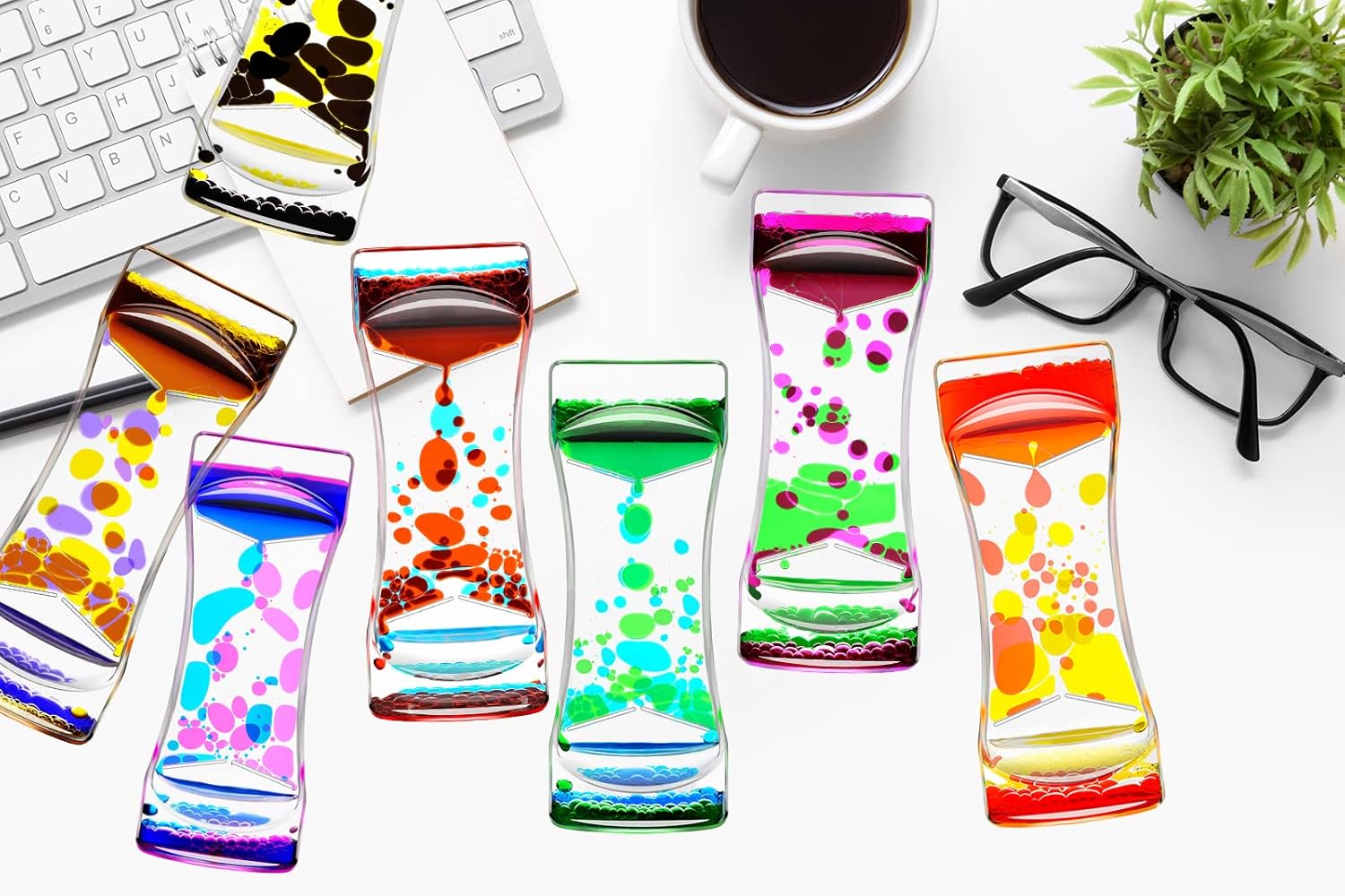 - 2.Liquid Bubbler Timer Toys: Great desk sensory play top toy for all ages ranging from children to adults. A great Home Ornament and office relax decor. The soothing rainbow colors remind you to slow down, relax and enjoy every moment. Black Yellow