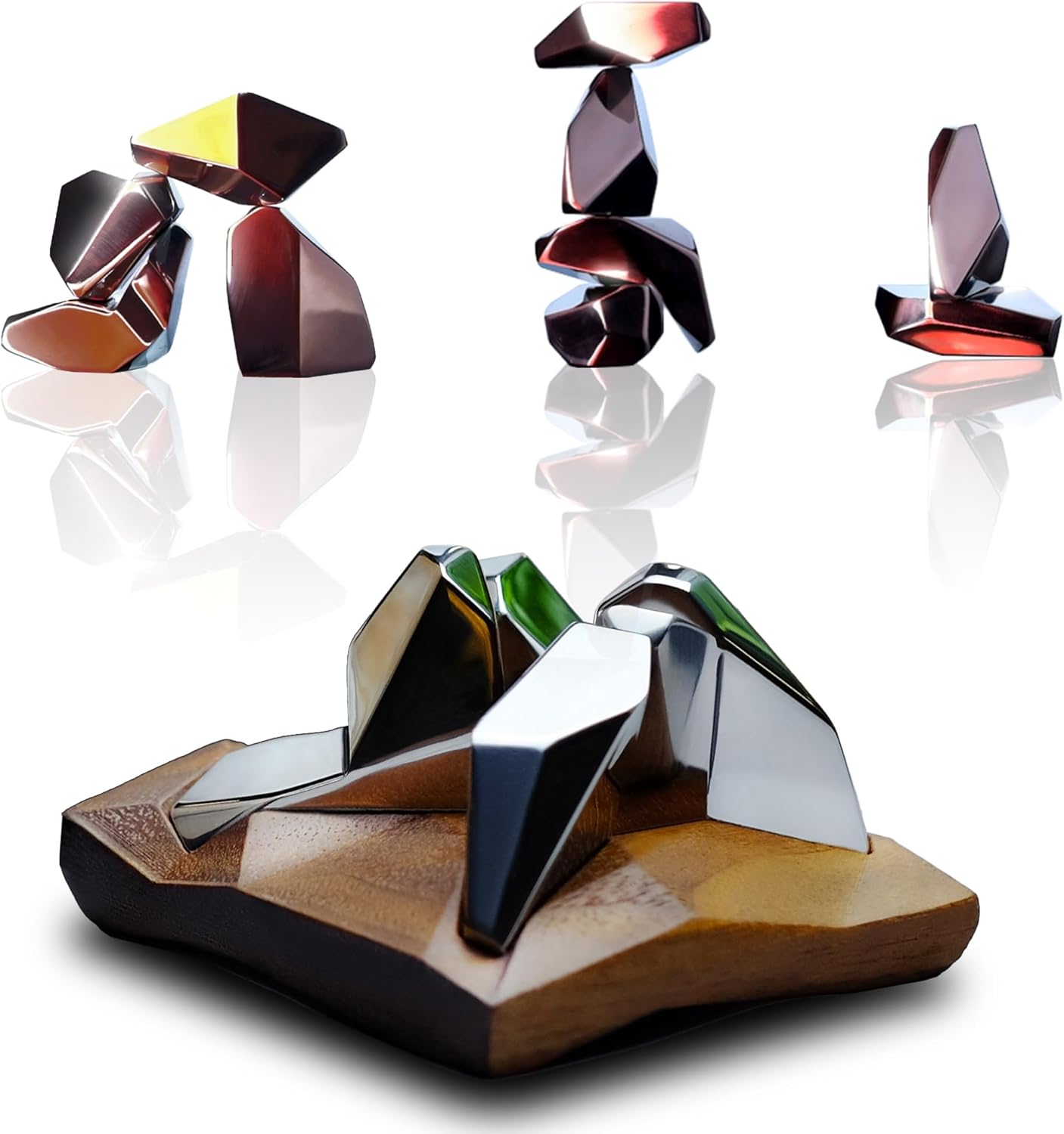 • Zenhedron Art Stones are beautifully made with stainless steel and hand-polished to precision. The wooden base is 3D lofted and the Art Stones are made of stainless steel by the lost-wax method. All items are then hand polished and they are handcrafted items instead of industrial products.