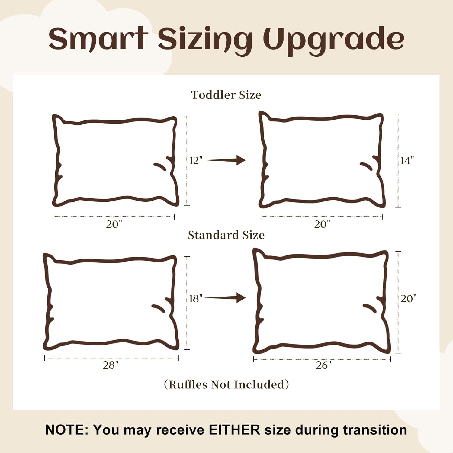 - Size: Toddler size pillowcase measures 20"L x 14"W, ideal for 1-3 years old toddlers girls boys, perfect for crib/cot/swaddle. Standard size pillowcase measures 26"L x 20"W, ideal for 3-12 years old kids girls boys, perfect for toddler bed children's bed. These cute pillow protectors are enveloped closure. Please understand the pillow insert/filling NOT included
