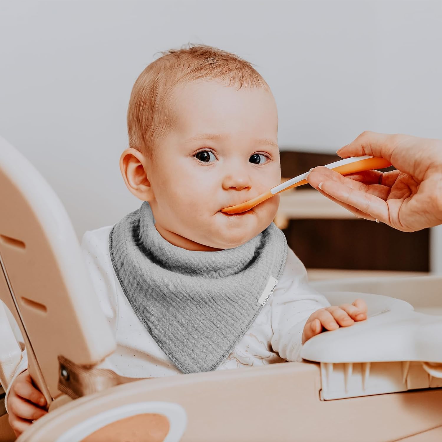 - Super Absorbent Muslin Bandana Bibs - Egmao baby muslin bandana drool bibs are made of soft organic cotton (Muslin) on the front and polyester on the back for added absorbency. Drool bibs for baby boy girl and this dual layer design helps to keep your baby clean and fresh all day long.No more drool rings on your baby's clothes!Most important the quality of fabric also as well as the bright colors with no chemical like smell and that have kept their shape and color after washing