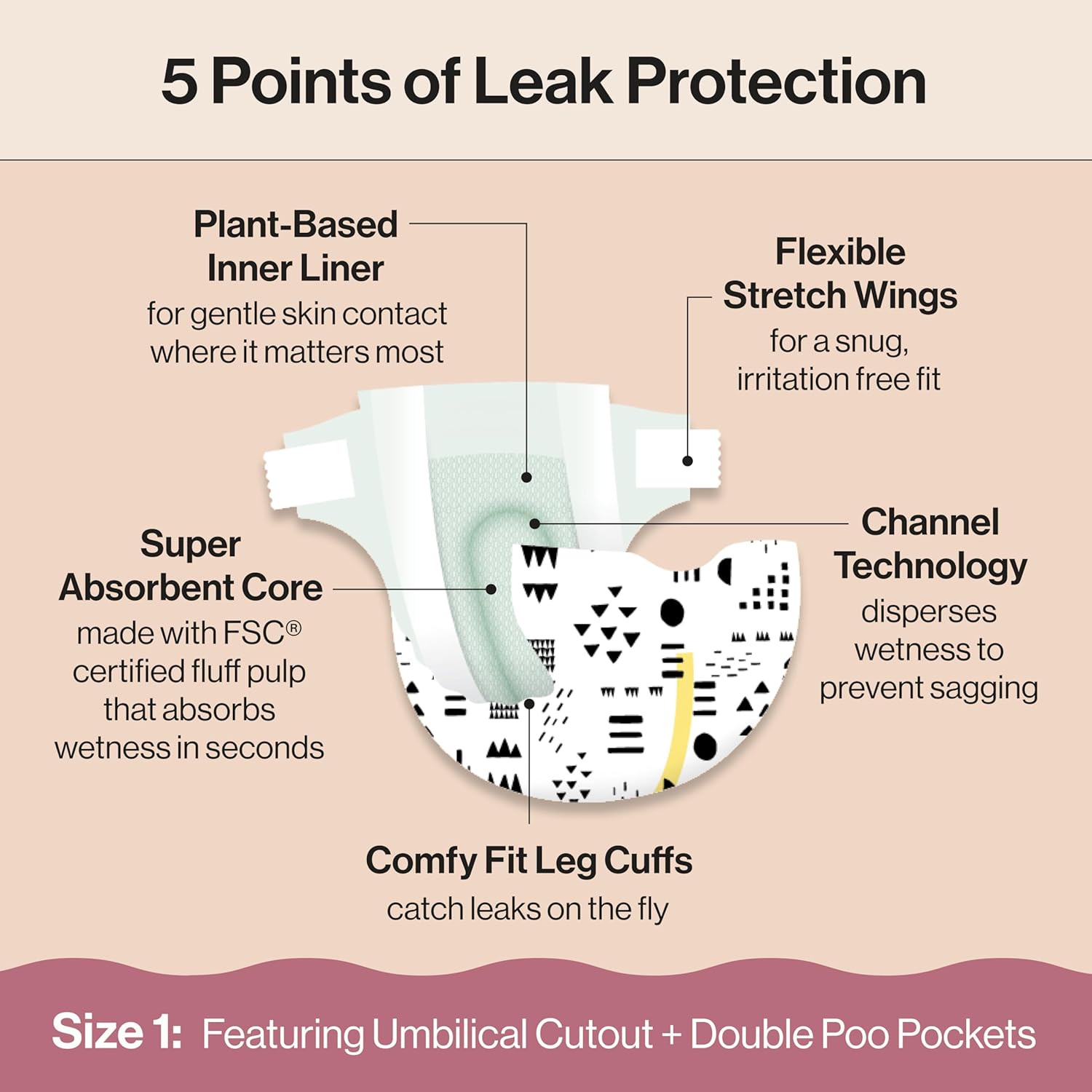 The Honest Company Clean Conscious Diapers for Delicate Skin | Up to 100% Leakproof | Hypoallergenic, Fragrance Free | Gender Neutral | Club Box, Size 1 (8-14 lbs), 78 Count (Prints May Vary)