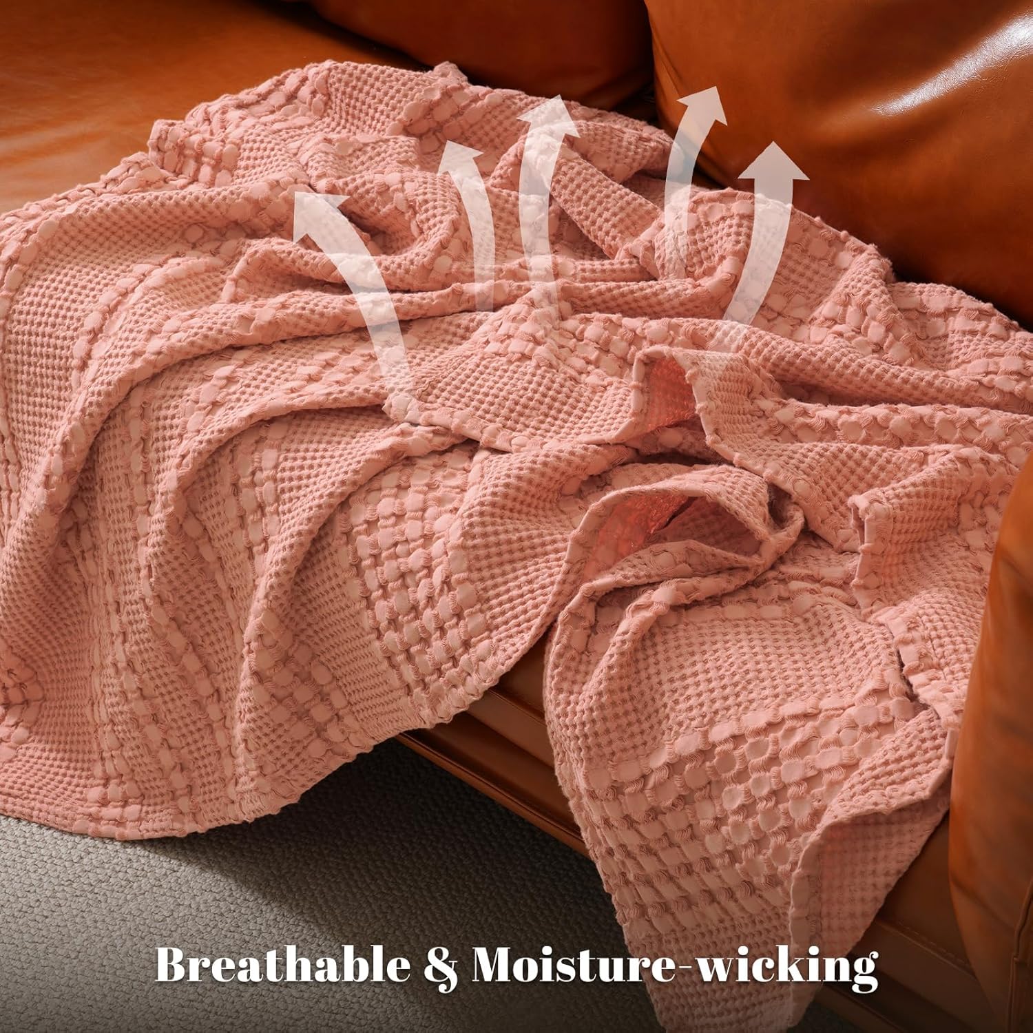 - Exquisite Waffle Weave Design: This classic and stylish waffle design boasts a three-dimensional, puffy, and elegant appearance, crafted with precision in every stitch, showcasing exquisite woven craftsmanship. The special waffle fabric promotes air circulation, temperature regulation, and moisture absorption for ultimate comfort. In addition, this stylish and sophisticated blanket, adding a touch of elegance to any room.