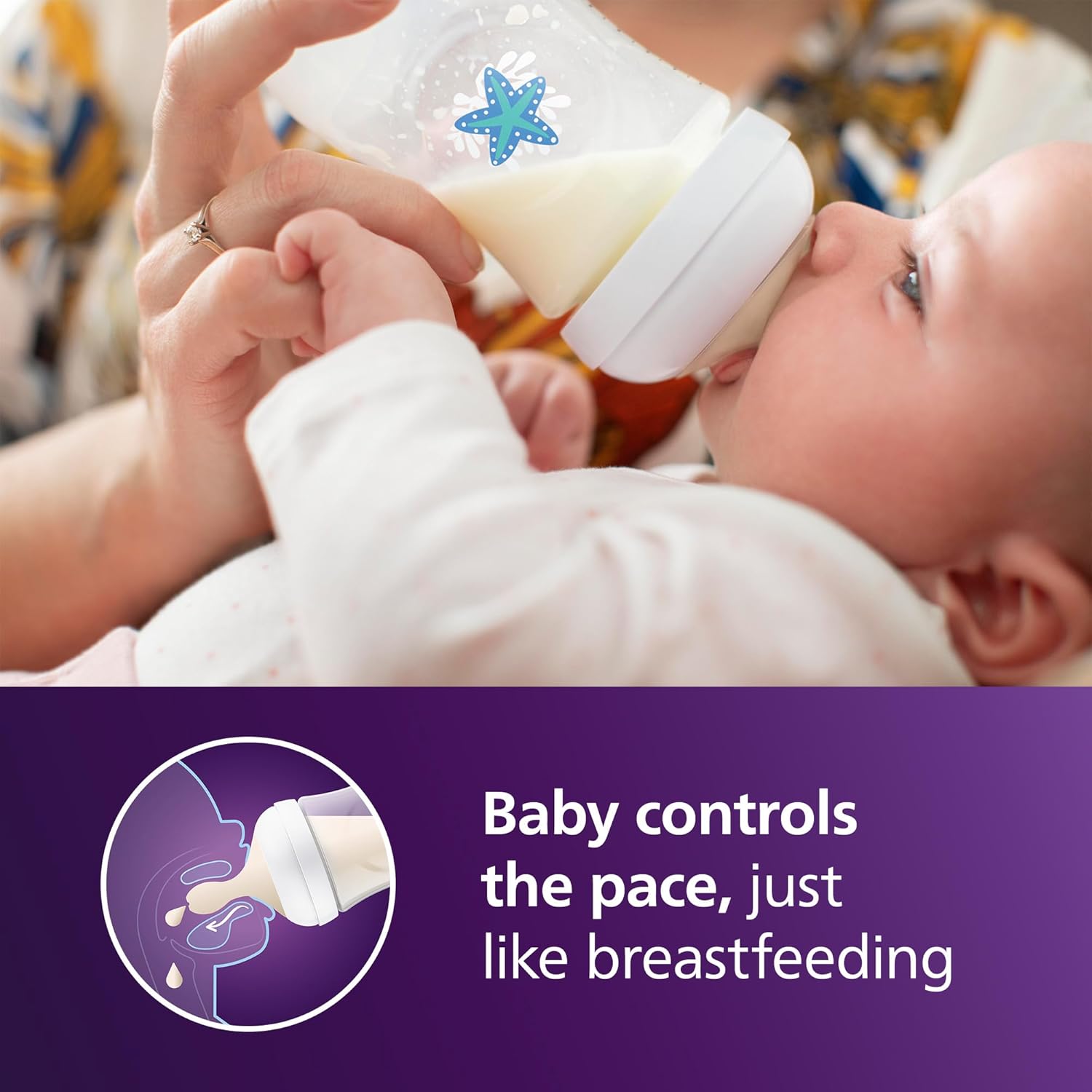 Philips Avent Natural Baby Bottles with Natural Response Nipples (Medium Flow, Flow 3), with Seahorse and Starfish Design, 9oz, 4-Pack, SCY903/68