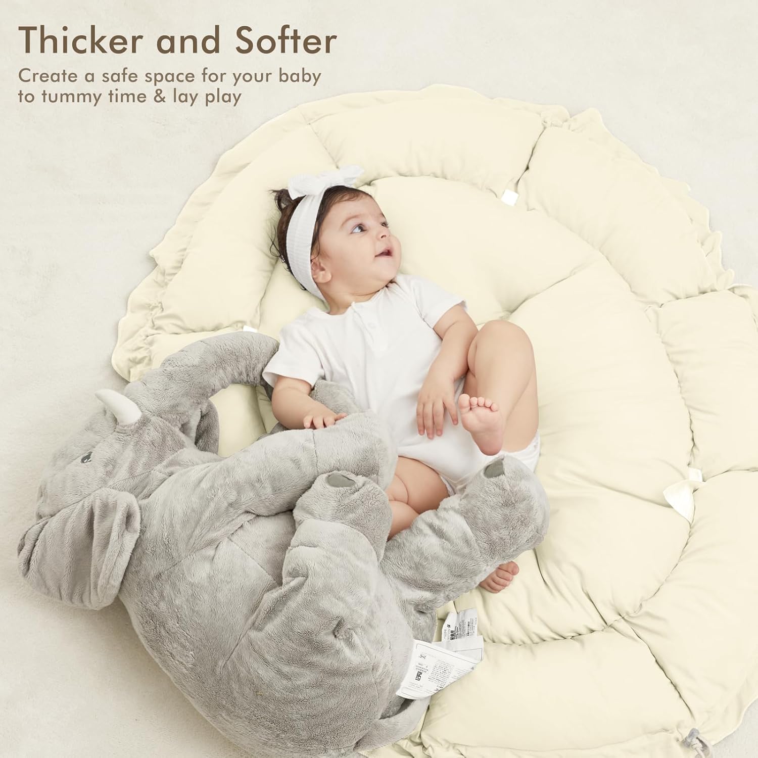 - THICKER & SOFTER: The reversible play mat crafted from premium plush material, offers a fantastic amount of cushion. Its neutral color scheme blends in with your homeβs aesthetic so you can keep it out even after playtime is over.