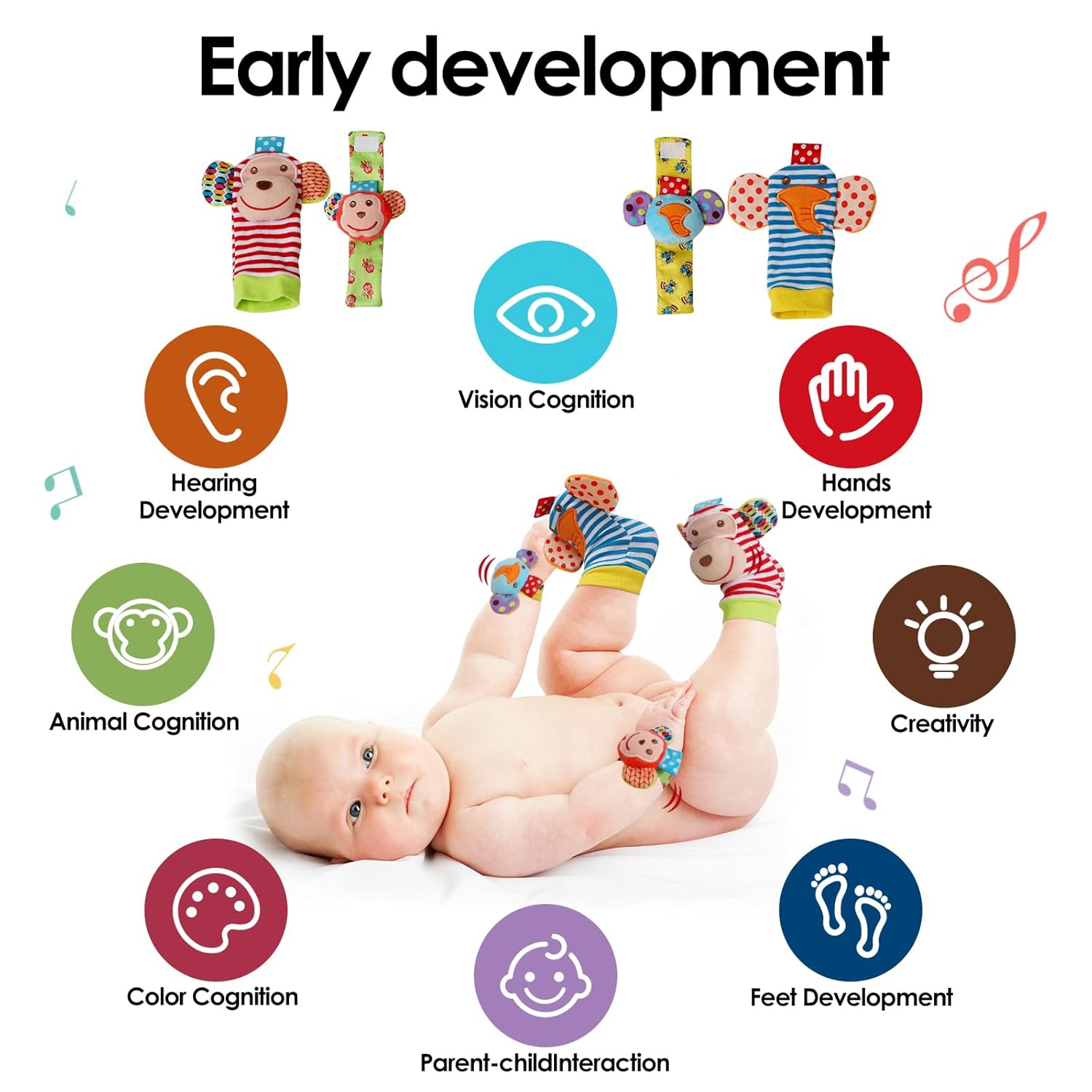 • 【5 In 1 All-Round Development】4 Removable sensory toys and 1 flower mirror, fully meet the baby's growth needs. 4 Toys: Baby teapot rattle, water cup rattles for newborn baby touching-growing,and TV rattle,clock rattle for improve baby responsiveness.Piano keyboards touching for graphics ,listening .All for colors cognitive. 1 flower mirror,as an important way for self-discovery.