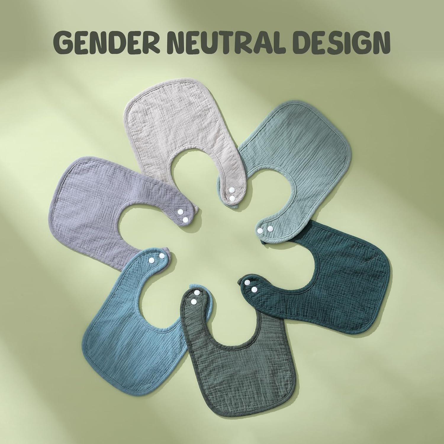 6-Pack Muslin Baby Bibs for Unisex Boys Girls, Cotton Baby Drool Bibs, Drooling and Teething Bibs for Infant