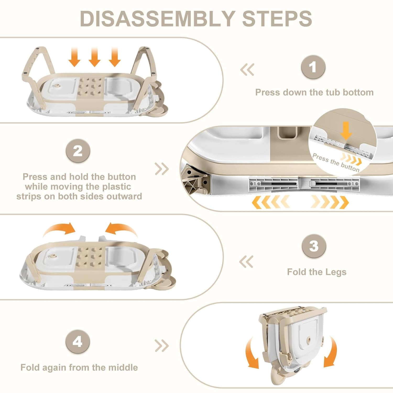 - Double-Fold Collapsible Design: TPN collapsible baby bathtub features an ingenious double-fold design, compactly measuring less than 4 inches in thickness. This facilitates effortless storage in any corner and enhances portability for on-the-go convenience, making it a perfect companion both at home and during travel. The off-the-floor drain with a user-friendly rubber plug guarantees seamless draining without the need for relocation.