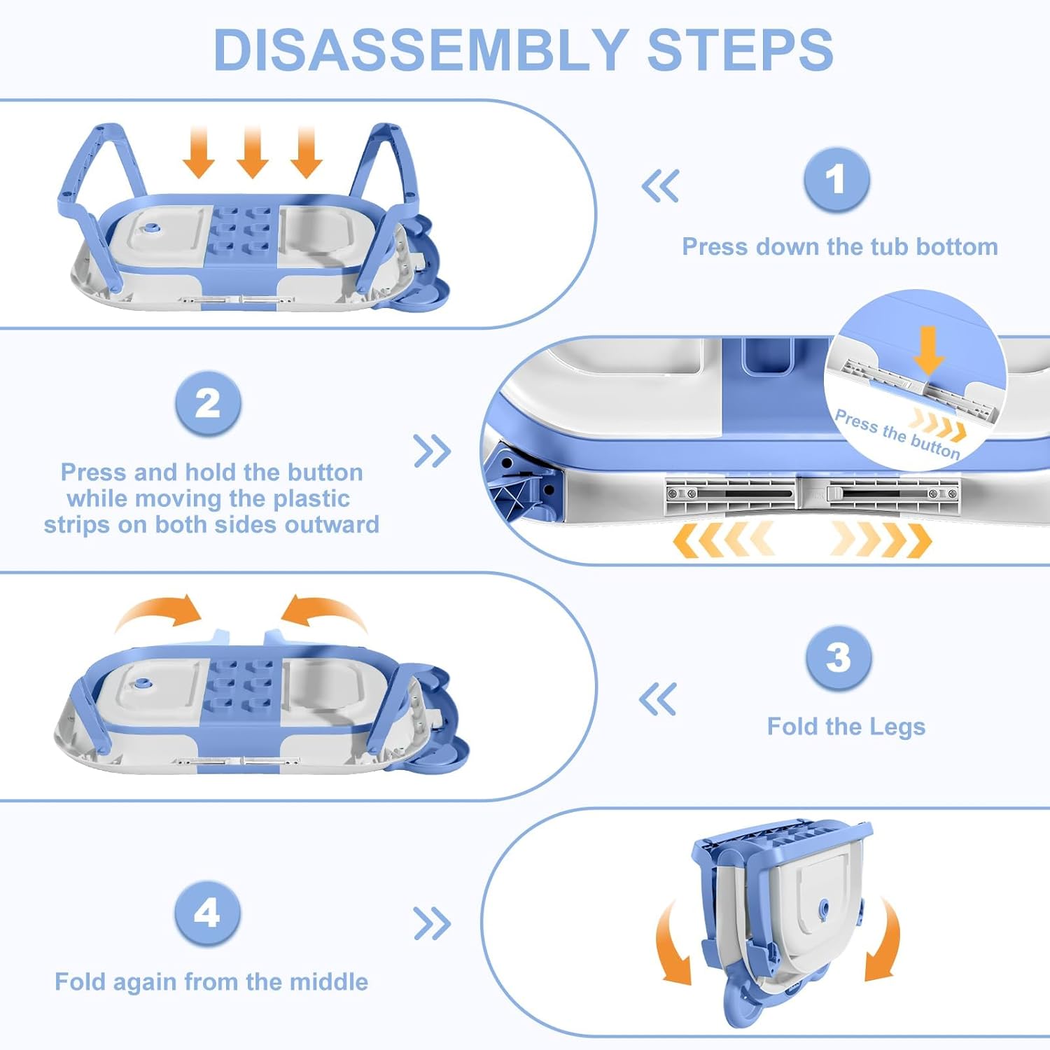 - Double-Fold Collapsible Design: TPN collapsible baby bathtub features an ingenious double-fold design, compactly measuring less than 4 inches in thickness. This facilitates effortless storage in any corner and enhances portability for on-the-go convenience, making it a perfect companion both at home and during travel. The off-the-floor drain with a user-friendly rubber plug guarantees seamless draining without the need for relocation.
