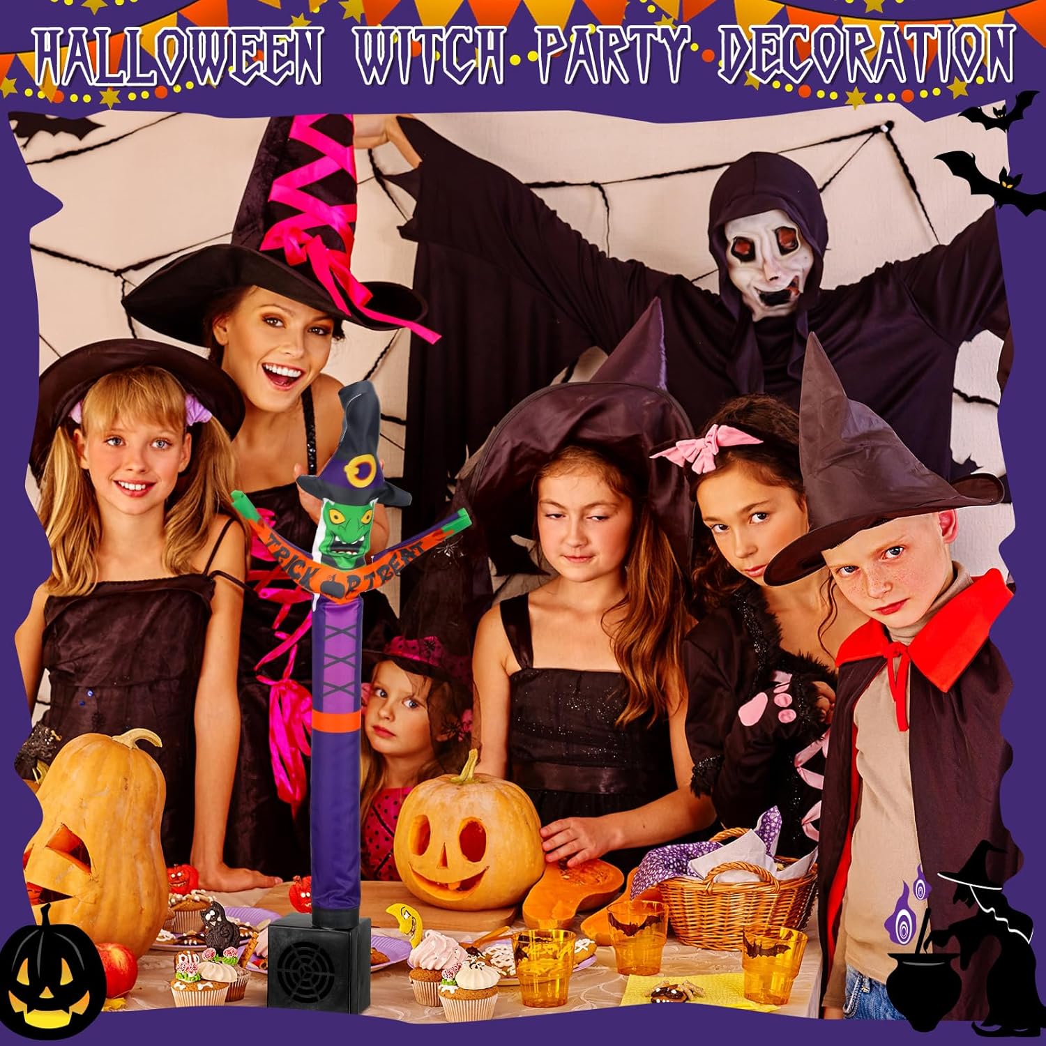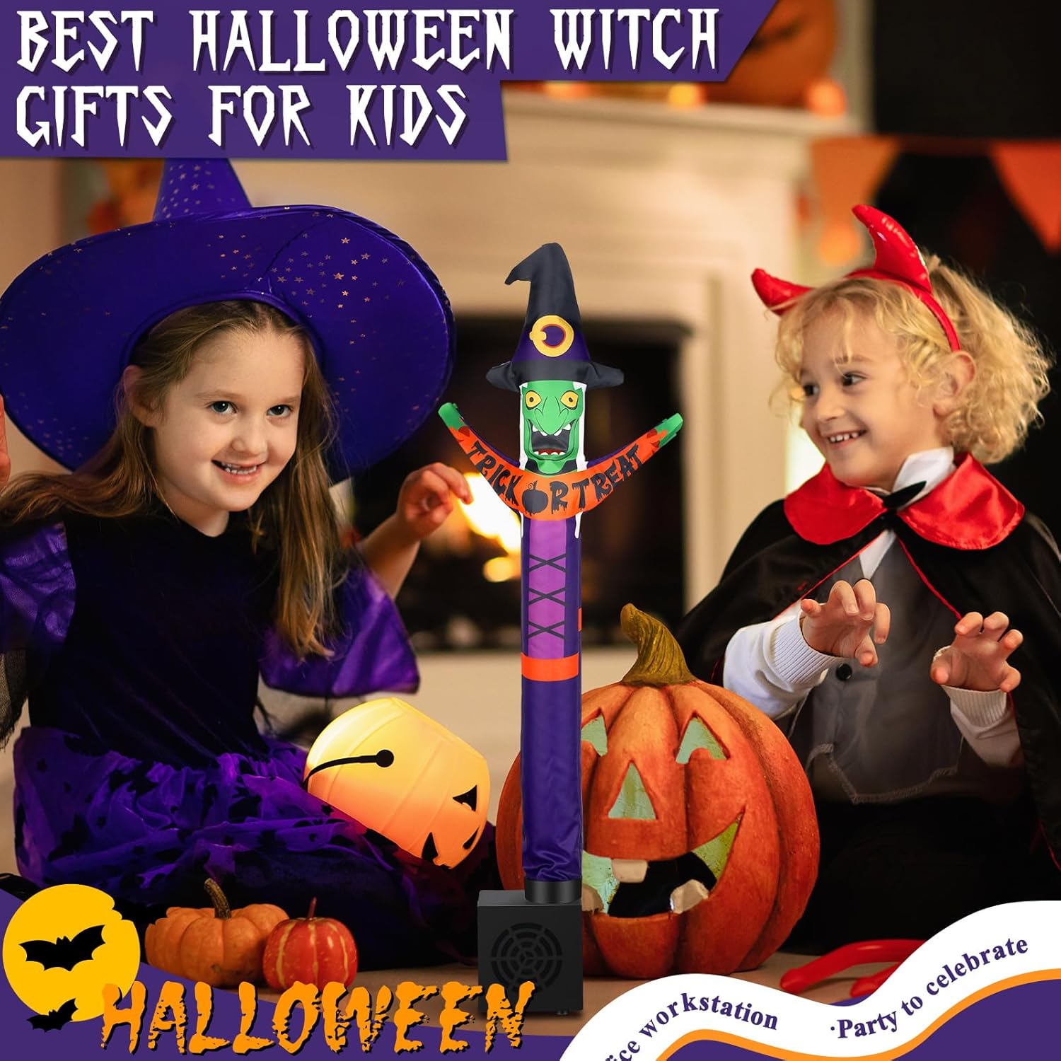 - Celebratory Halloween Style: designed as a horrible Halloween tube man with a witch hat, our adorable inflatable is ready to join you in Halloween celebration; This quirky horrible character is bound to be a hit, bringing joy and horror atmosphere to the occasion