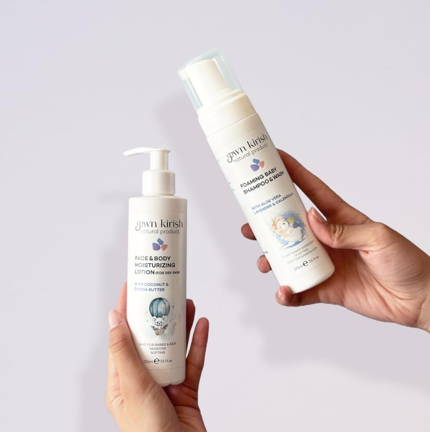 Gew’n Kirish Natural Baby Shampoo & Body Wash – Tear-Free, Hypoallergenic Cleanser with Lavender Oil, Aloe Vera & Oat Extract, Plant-Based, Vegan, Sulfate-Free Formula, 7.5 fl oz