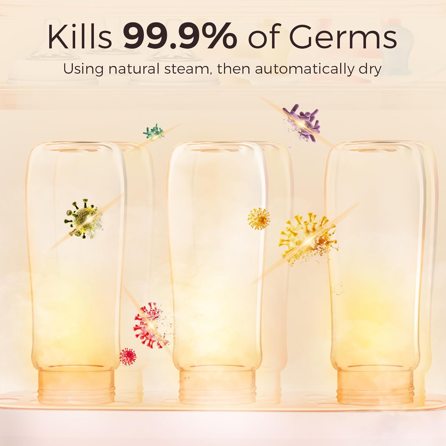 - Designed with a fully automatic operation and LED countdown display, bottle sterilizer is easy to use and ensures precise and safe sterilization. Its spacious design allows for the sterilization of up to 8 bottles at once.