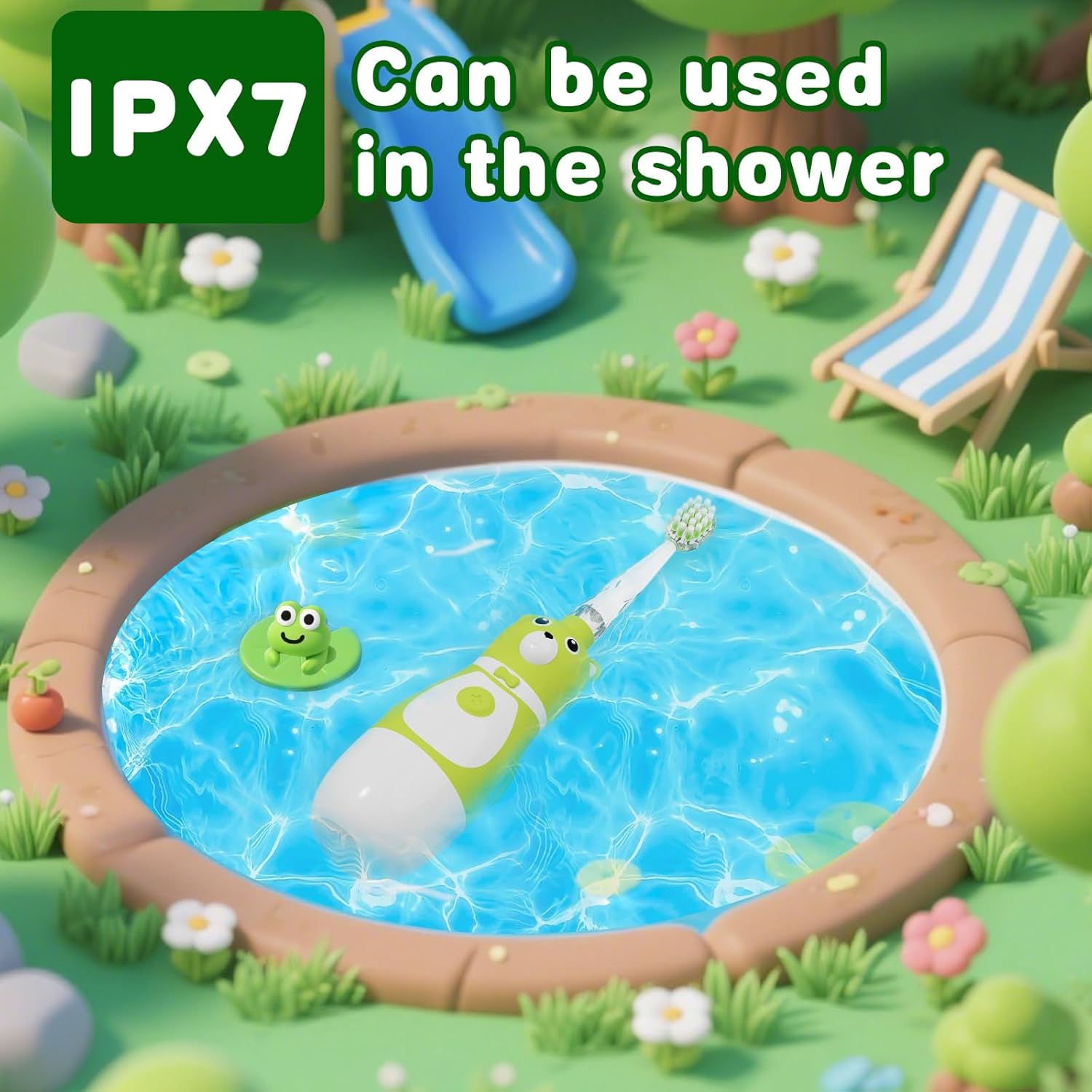 - This kids toothbrush features IPX7 waterproofing—simply rinse it under running water after use. The fully sealed design withstands splashes, brief immersion, and humid bathroom environments with ease.Therefore, it is highly suitable for home use.